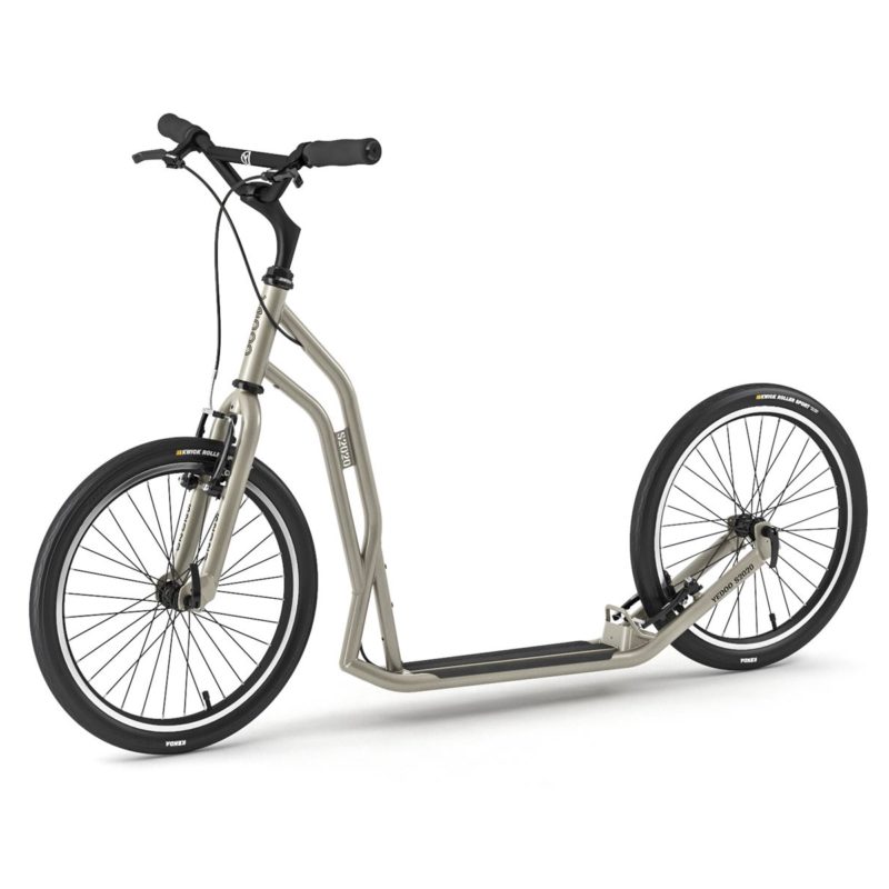 Du får skikkelig bygde sparkesykler som passer for voksne, enten du vil kjøre sammen med barna eller bruke den som ett nyttekjøretøy. Skal du sparke langt f.eks. til jobben så får du sykler med store hjul eller stort hjul framme og ett mindre bak, og de er gjerne lufthjul, noe som er mer komfortabelt enn en med massive hjul.