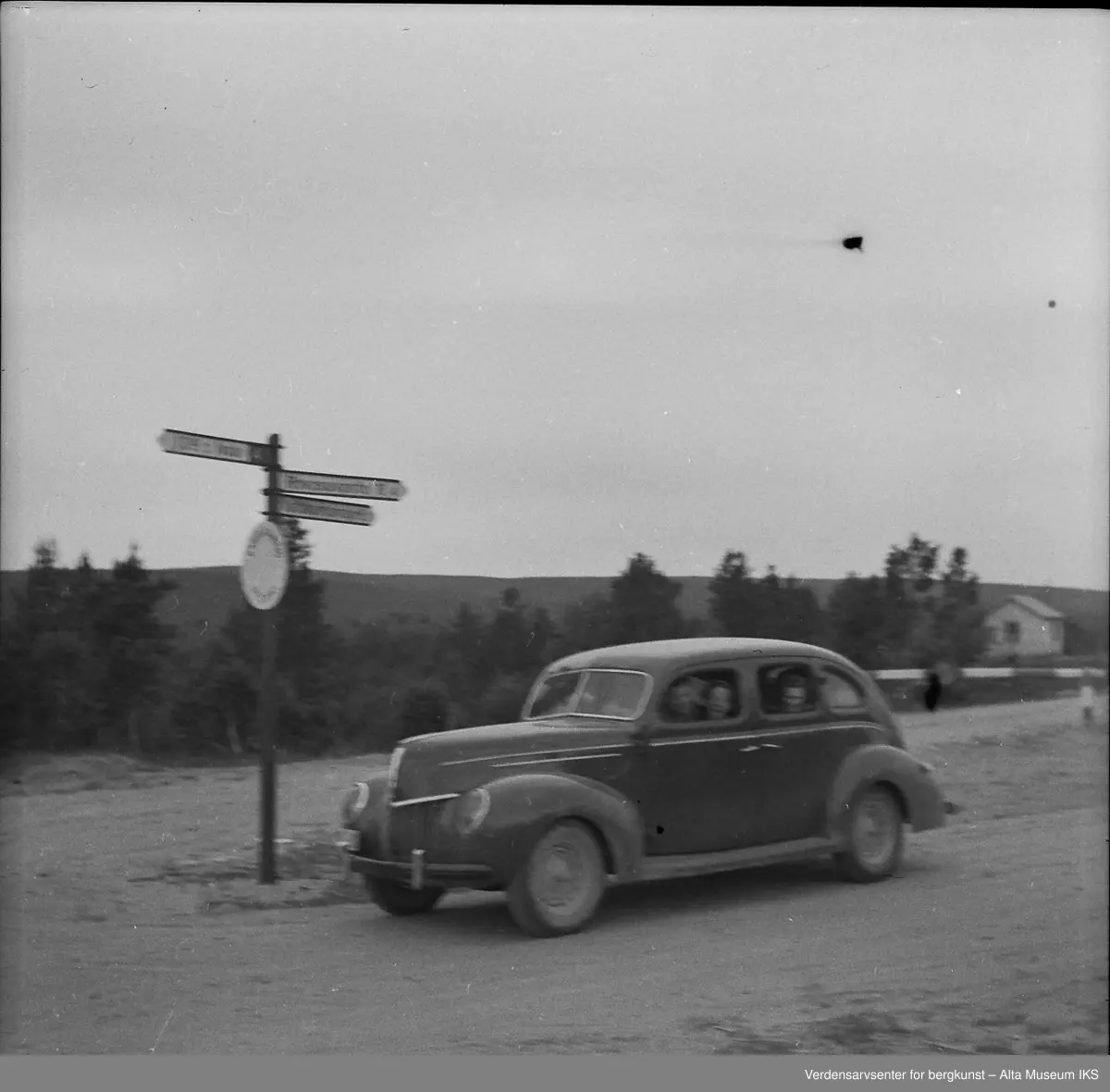 En bil står ved et veikryss. Bildet er fra en Finlandstur