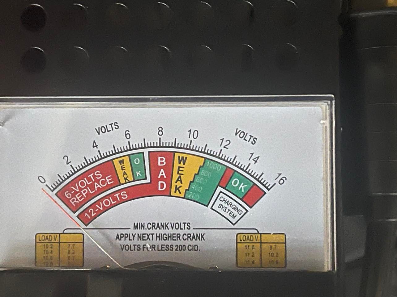 Det skal du have en batteritester for at måle, det kan du ikke med et multimeter . Lad batteriet op over natten, du kan høre på din starter om det leverer nok startstrøm. Hvis batteriet er over 5 år gammelt, så byt til nyt.