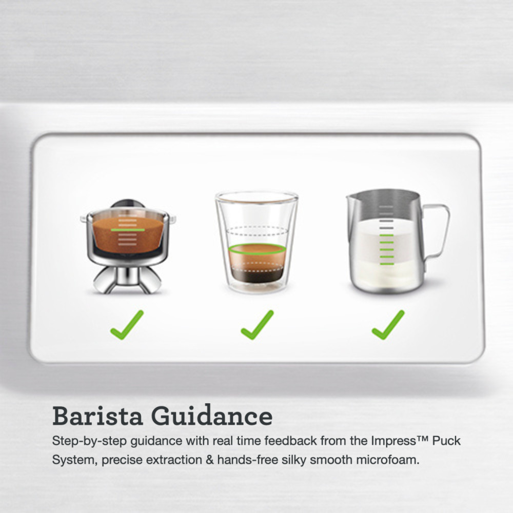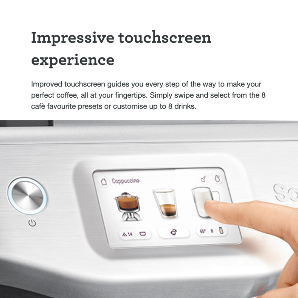 Sage kaffemaskin Barista Touch SES880BSS Barista-prestanda med ny intuitiv pekskärmskärm med förprogrammerad café-dryck-meny och automatisk mjölkstrukturering . Allt inom ett kompakt fotavtryck.