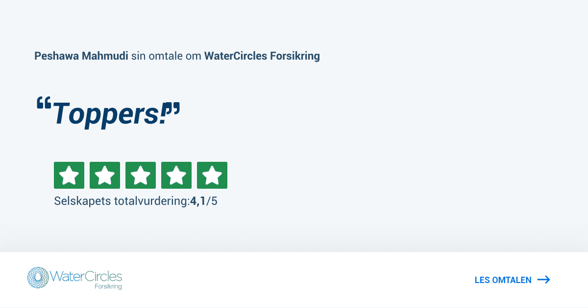 Min erfaring med WaterCircles Forsikring, er bare positivt, et seriøst forsikringsselskap som står på for kundens beste , og min kunderådgiver kan jeg ringe døgnet rundt, hvis det er noe.